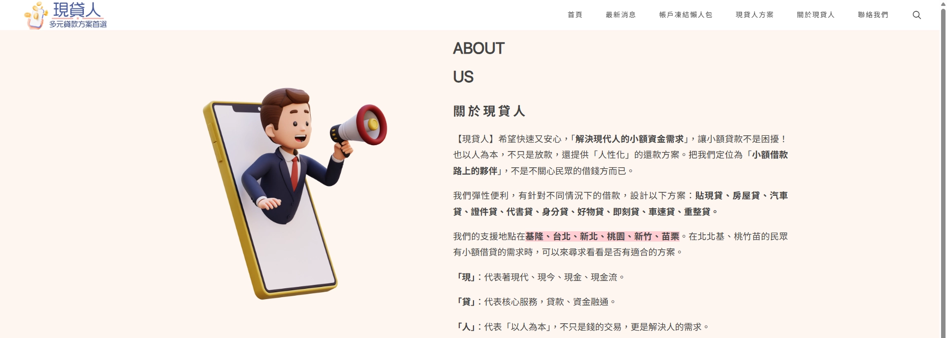 以台灣中部地區為主要幫助民眾的借錢區域,主打「小額、彈性、及時」的貸款幫助!